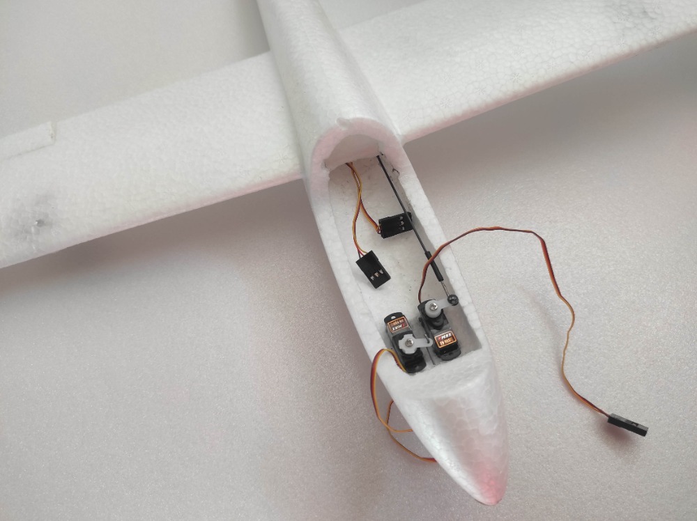 Ve stavbě jsem trochu pokročil, začíná se to pěkně plnit, udělal jsem i háček ovládaný samostatným servem, protože váha vpředu se prostě hodí ;) a podle předběžného vážení bych se mohl vejít do 70 gramů, což je super, to jsem nečekal. Ale uvidí se až jak to bude létat a jak moc bude potřeba dovážit, nebo ne.