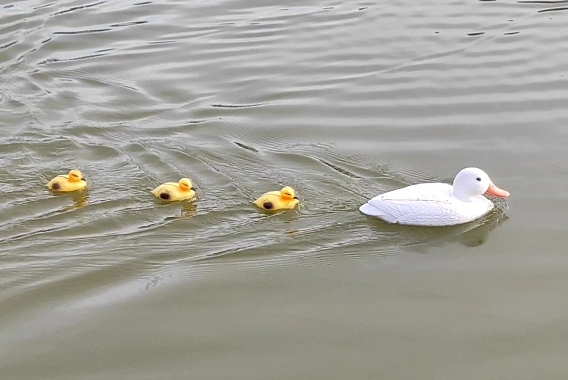 Tak s těmi kachňátky je to už moc pěkné! Bylo by zajímavé udělat na jaře nějaké video z rybníka, kde by takováto umělá kachní rodinka plula vedle té skutečné živé kachní rodinky. Po tom by skočila i televize PRIMA do večerních zpráv ;)