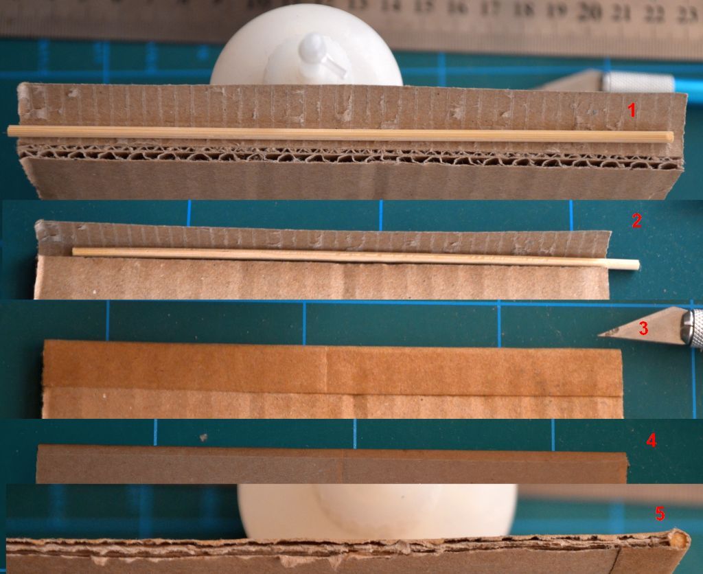 Vyzkoušel jsem vyztužit špejlí hranu 5-vrstvého kartónu.