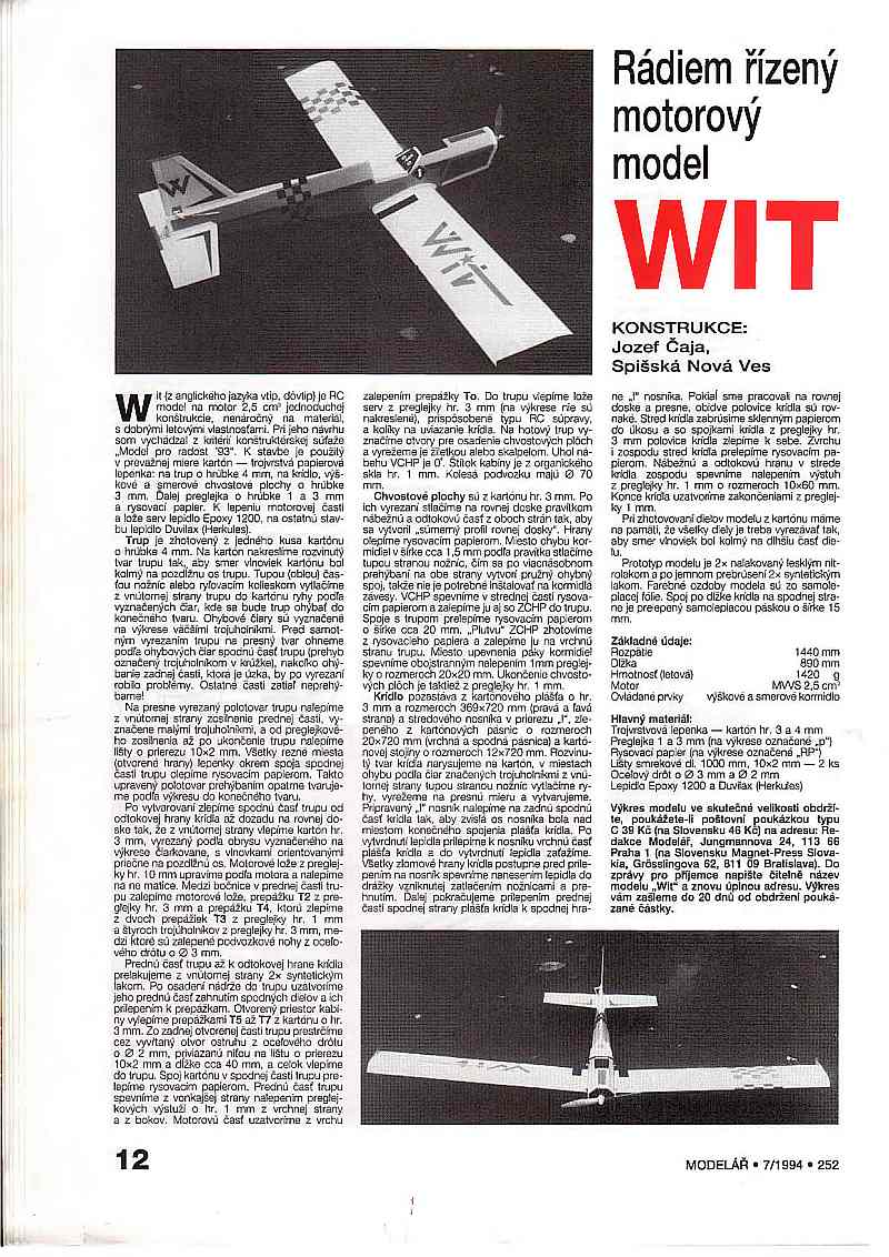 Ale vzhledem k tomu, že jde o plánek upoutaného modelu letadla z kartónu, dávám to sem.