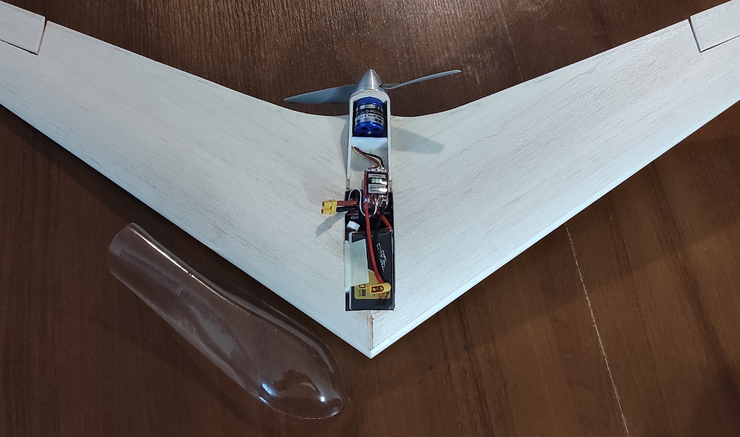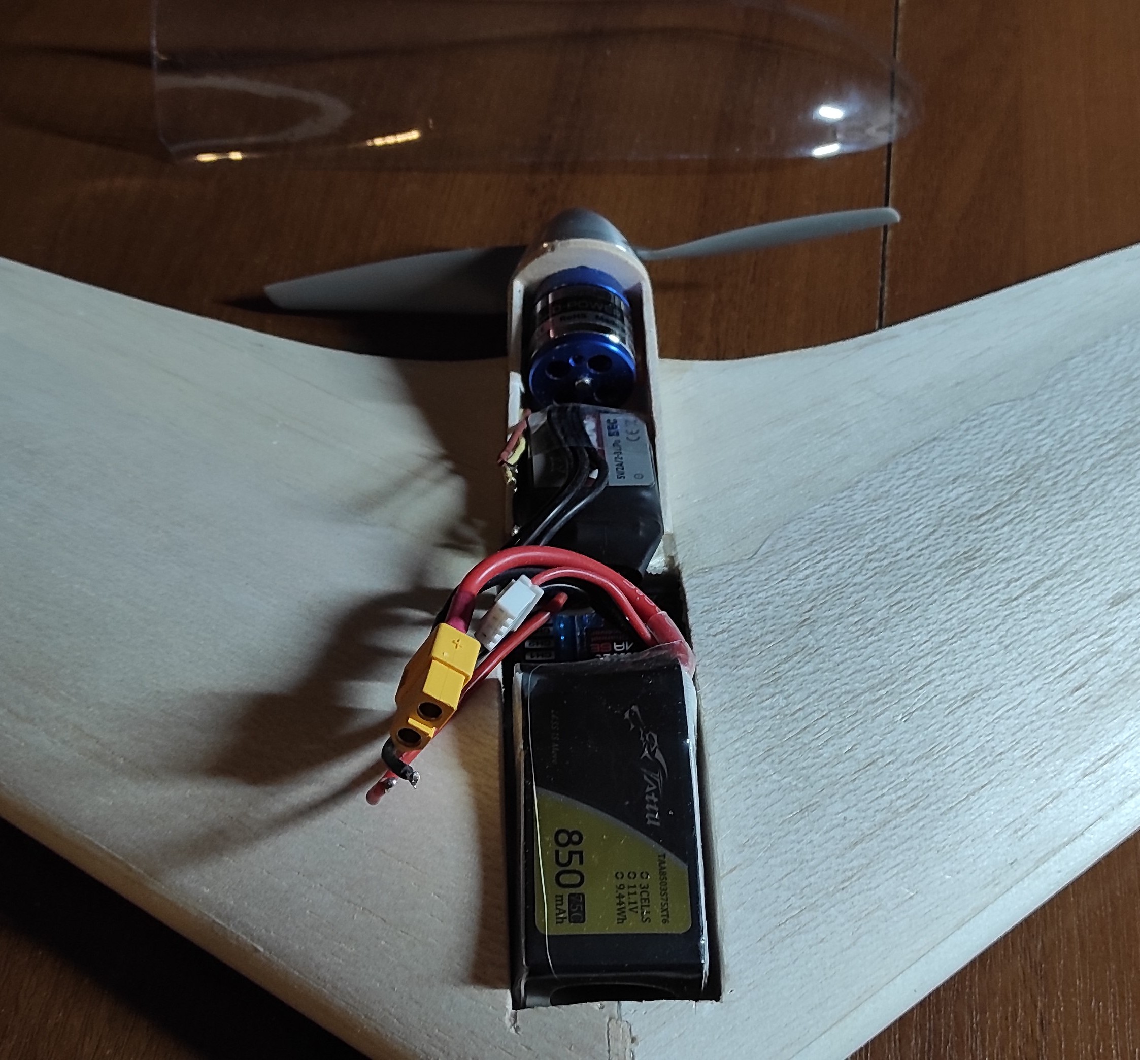 V originále tam mají kravský motor a baterku dvojnásobné kapacity, já tak teď s tou nízkou váhou mám 3S 650mAh a doufám že to bude všechno společně nějak rozumně fungovat.