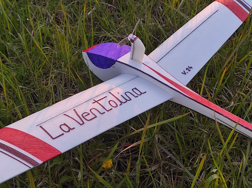Pevný pylon se nezdá být problém ani v kluzu. Použití menší 3-listé vrtulky z dronu má na svědomí o něco línější výkony při stoupání, ale zase mi přijde o něco delší letový čas, asi není motor tolik zatížený...