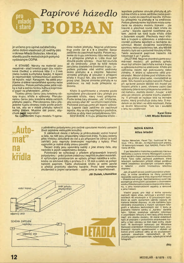Modelář 6/1979 Boban - vyzkoušeno a celkem OK. Špejle v trupu.