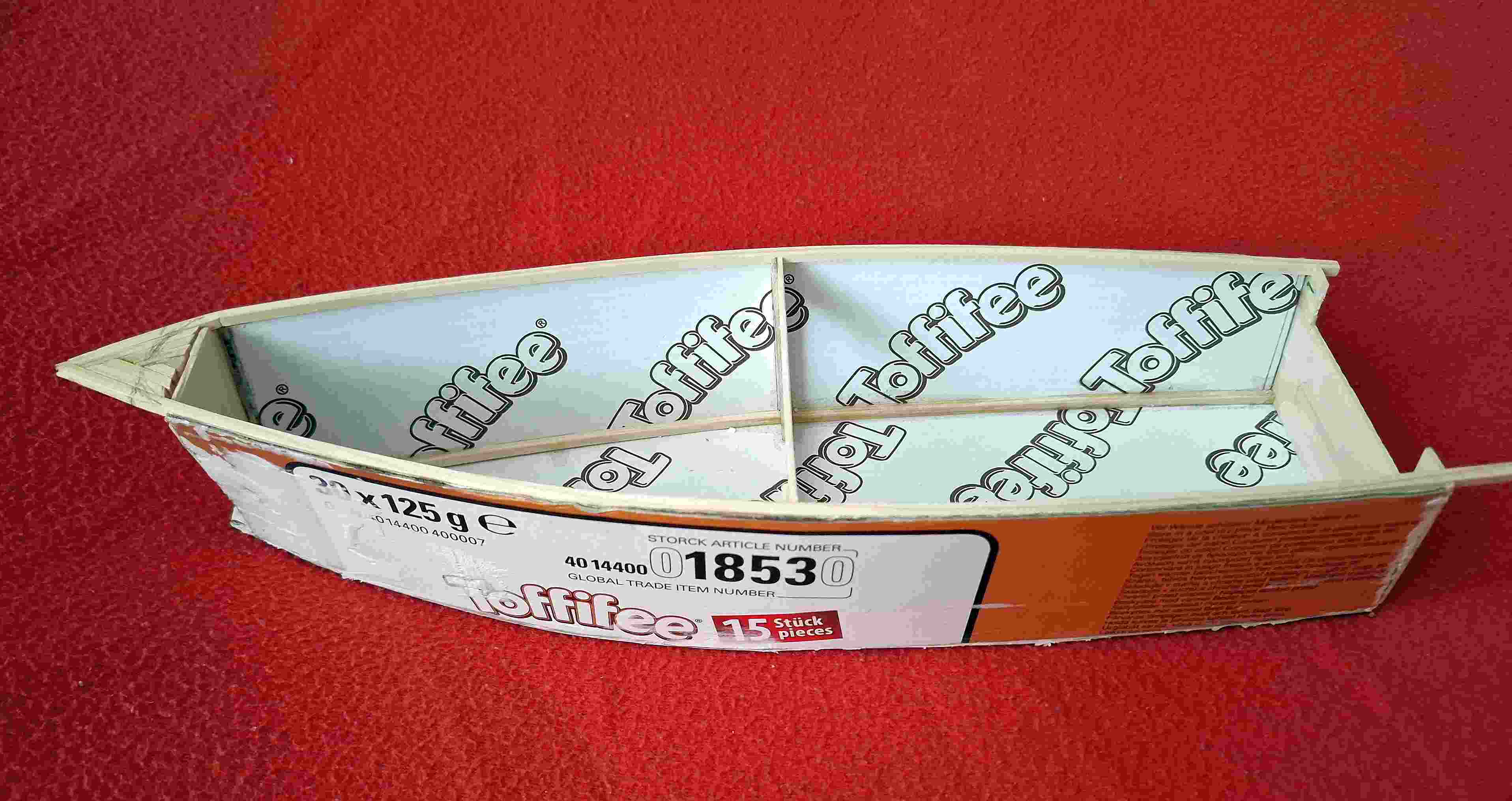Dodatečně pro představu doplňuji nějaké fotky. Inspirace zdrojem stavebního materiálů doporučená Benefitem v odkazu výše je jasná, ale ten kartón z těch cukrovinek je opravdu kvalitní a pevný, jen 1,5 mm tlustá třívrstvá vlnitá lepenka.