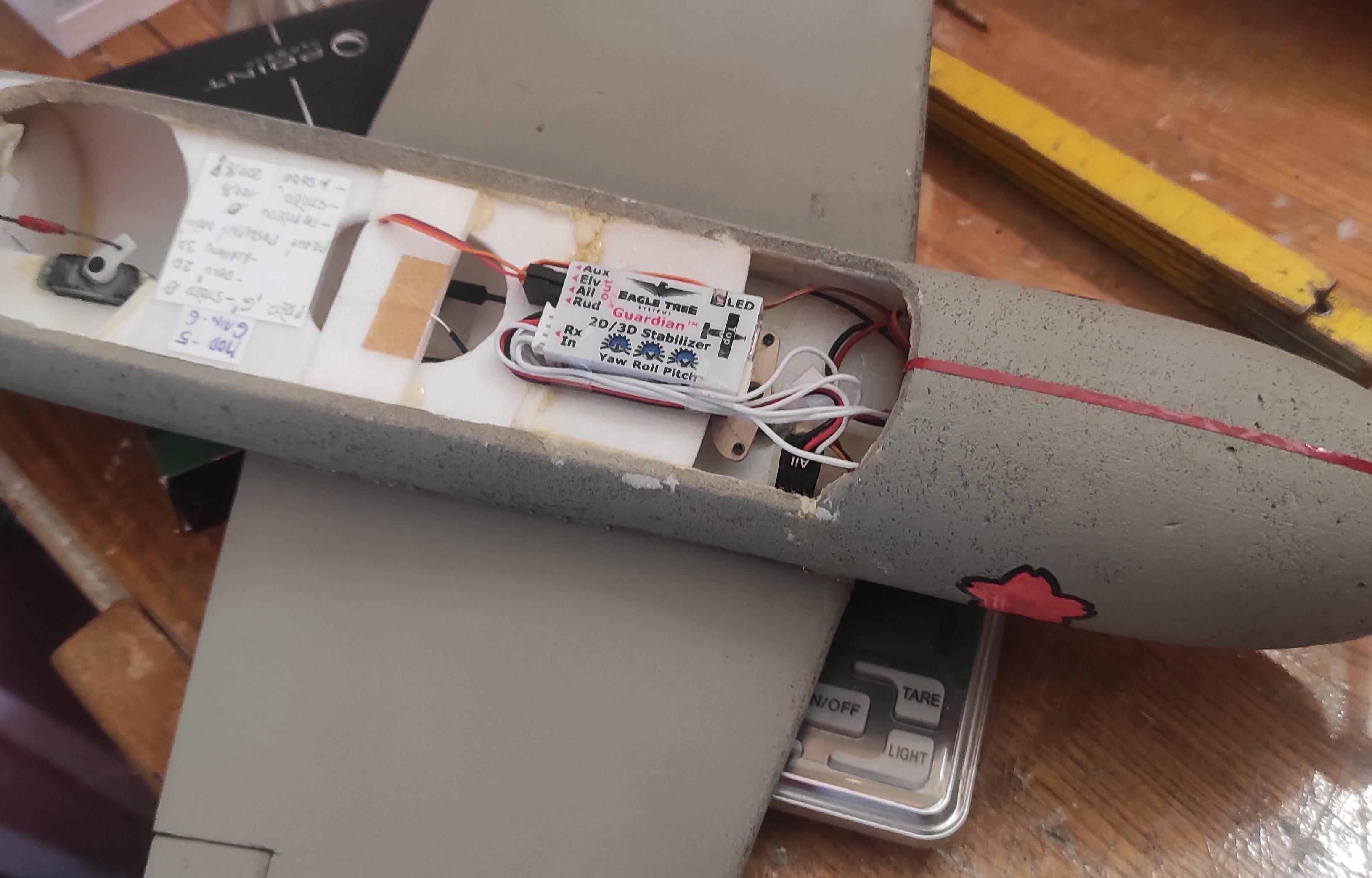 To proměnlivé těžiště je přesně ten případ, kdy elektronická stabilizace dává opravdu smysl. Viděl jsem sice u jednoho VTOL modelu i řešení s pohyblivým uložením akumulátoru na servo, ale tohle je mnohem jednodušší řešení. Ten Eagle Tree tenkrát musel stát aspoň dva litry, ne?