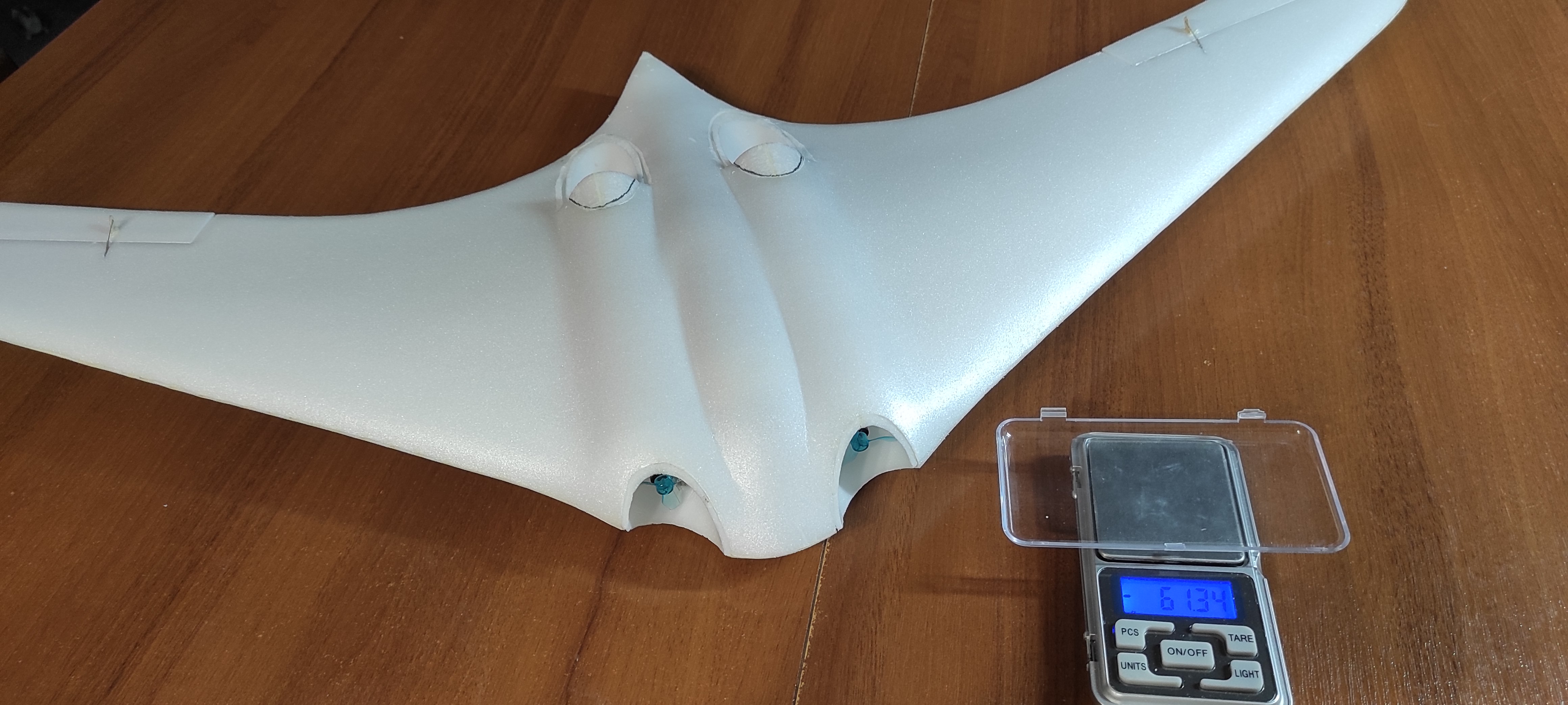 Po prvním létání je závěr takový, že vrtulová varianta je lepší, celkově létavější a pravděpodobně i vhodnější do haly při dodržení nízké váhy. 2-motorovou variantou jsem si ale ověřil, že je to použitelné i pro dmychadla, ačkoliv jsem použil jen malé motory s vrtulemi umístěné v rourách. Potřeboval jsem si také ověřit správný úhel naklonění rour motorů vůči letadlu, což se zdá být v pořádku.