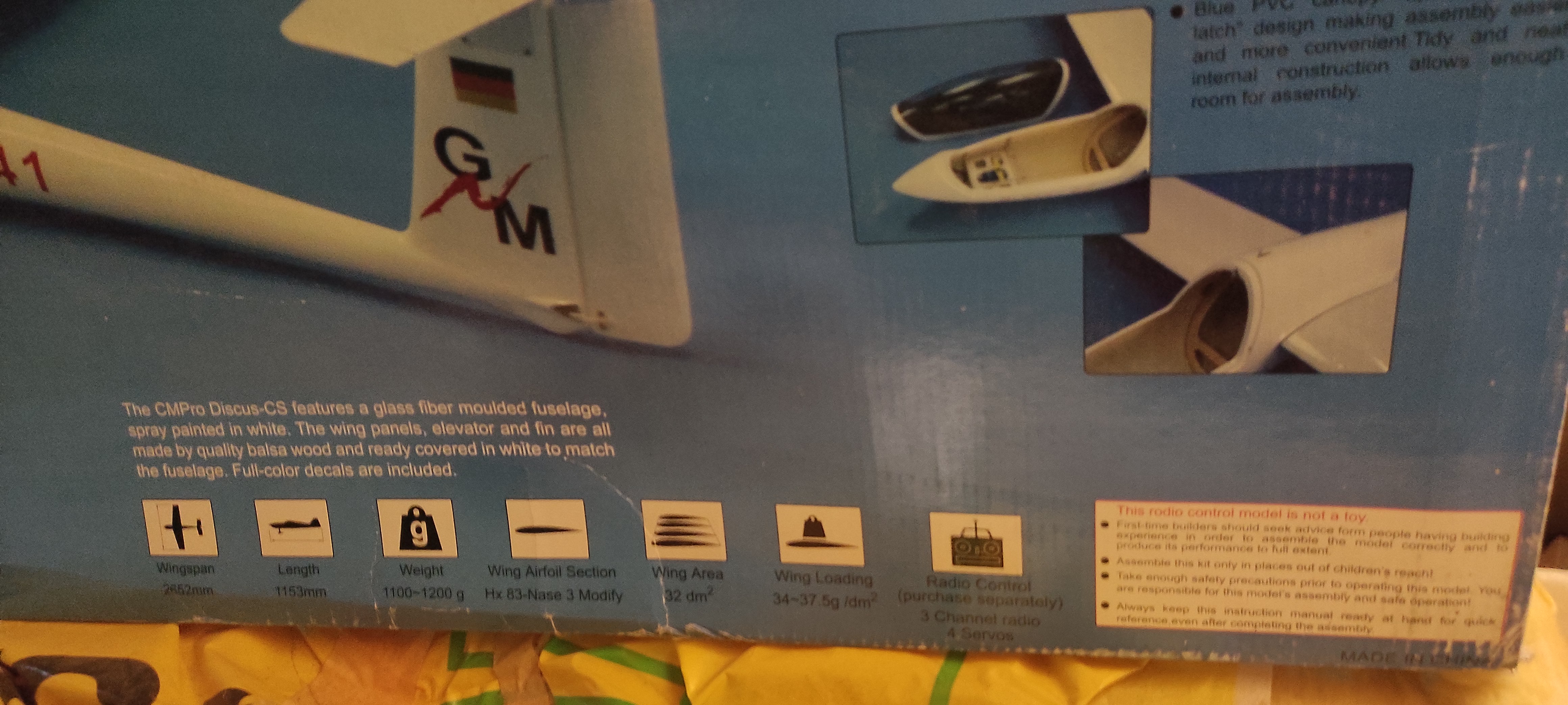Prodám nenačatou čínskou stavebnici větroně. Technické údaje viz foto. Delší dobu uložena (už jsem na ni úplně zapomněl), vše kompletní, pouze laminátové díly mírně zažloutlé a samolepky bez záruky jak moc dobře budou po letech lepit...