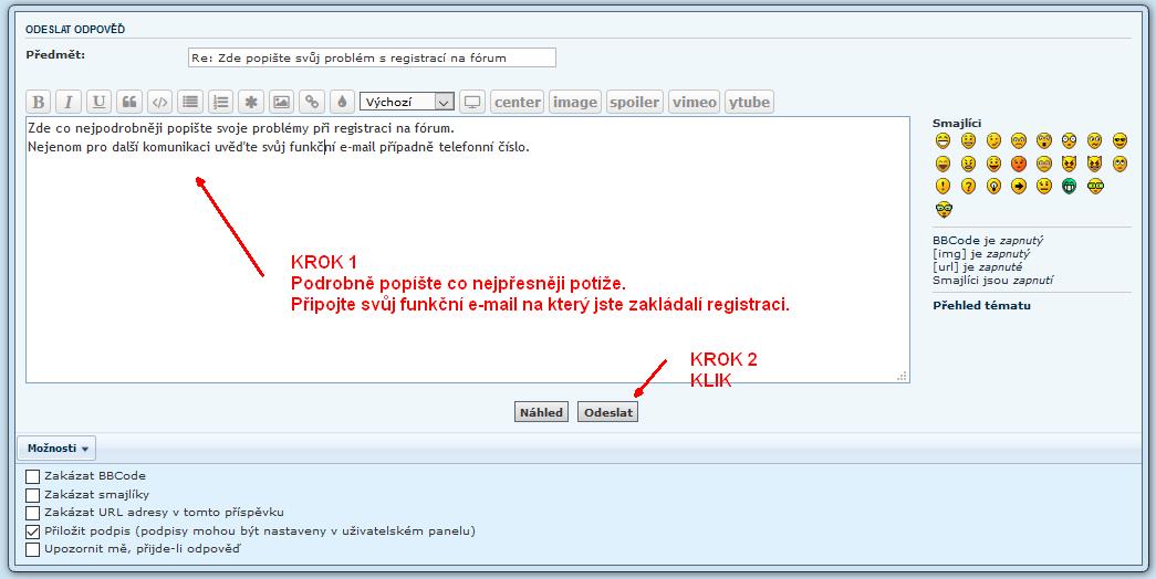 Re: REGISTRACE - 5 kroků pro řešení potíží při registraci na toto fórum