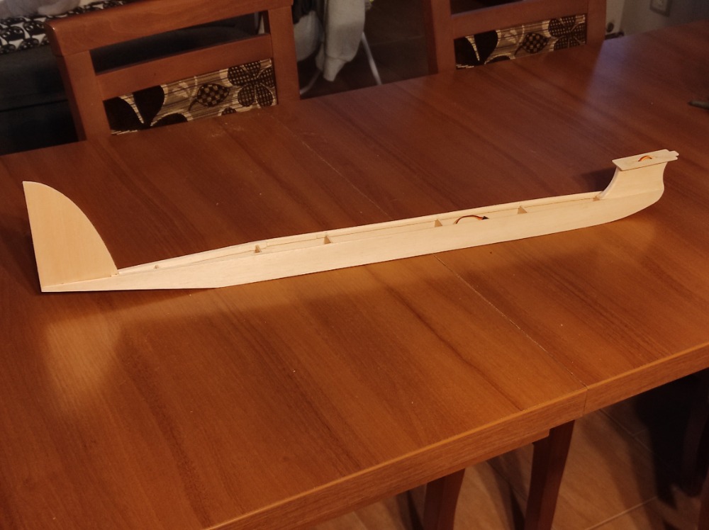 Stavba trupu, jednoduchá bedýnka s pár přepážkami a vnitřním vyztužením rohů balzou 2x2 mm. Z těch 3 větších dílů nad trupem bude pylon výškovky. Super relax stavět něco takového... ;)